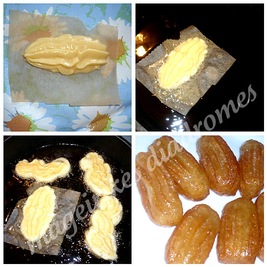 Σε μια κατσαρολιτσα βάζουμε το λάδι να κάψει και πατώντας το καρνέ ρίχνουμε από την ζύμη μέσα στο καυτό λάδι .