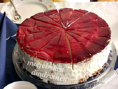 - Μετα με ενα μαχαίρι ξεκολλάμε προσεχτικά το στεφάνι της φόρμας Και χωρίζουμε σε 16 κομμάτια.