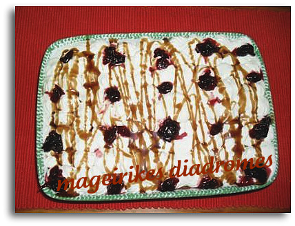 Γαρνίρετε με σιρόπι καραμέλας και βύσσινα .