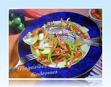 - Τα σοτάρουμε σέ λάδι και τα ρίχνουμε γύρω από τα ψάρια, αλατοπιπερώνουμε.