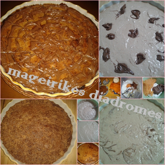 - Ρίχνουμε την κρέμα πάνω από τη βάση μπισκότου,απάνω βάζουμε μικρές κουταλιές μερέντας και με οδοντογλυφίδα σχηματίζουμε "νερά", συνεχίζουμε το ψήσιμο για 30 λεπτά.