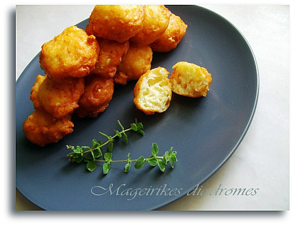 - Με ένα κουτάλι που βουτάμε προηγουμένως στο νερό παίρνουμε κουταλιές από το μείγμα και τις ρίχνουμε σε φαρδύ τηγάνι