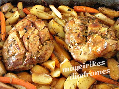 - Ένα μπούτι χοιρινό κομμένο σε μικρές μερίδες,