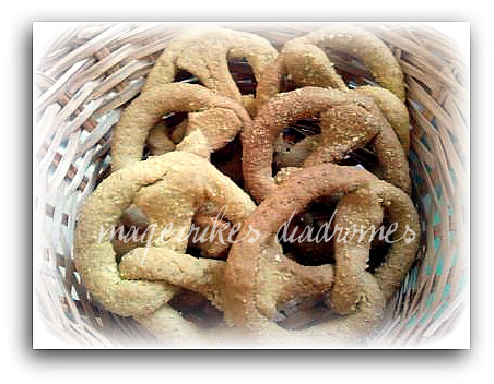 - Πλάστε μικρά κουλουράκια, πασπαλίστε με λιγο καλαμποκάλευρο